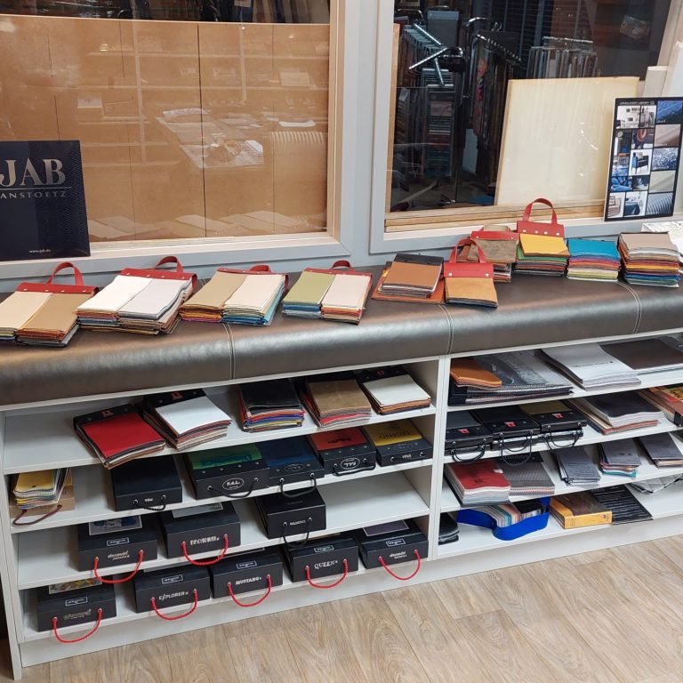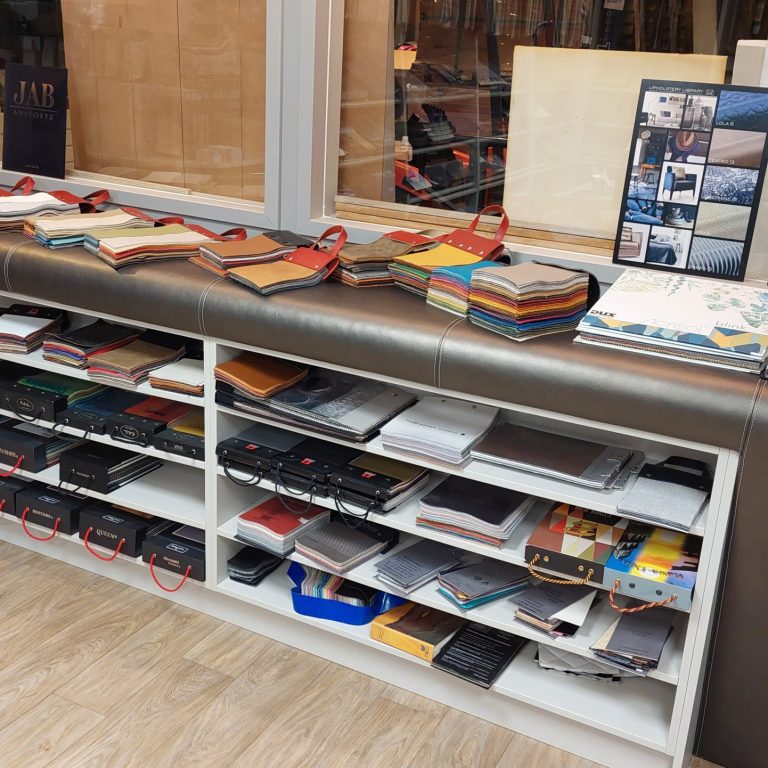 In onze showroom vind u een uitgebreide collectie aan stalenmateriaal uit diverse grote meubelstofcollecties van gerenommeerde merken.
