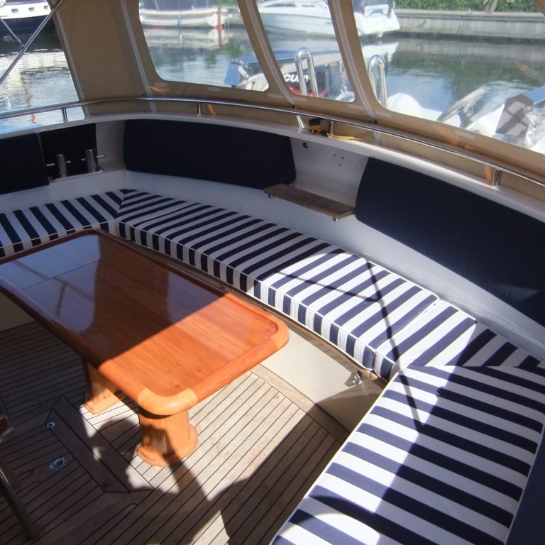 Bent u toe aan nieuwe bekleding en/of nieuwe kussenvulling voor uw motor- of zeiljacht? Voor elk budget bieden wij een gepaste vakwerk-oplossing, waarbij u een keuze kunt maken tussen stof, kunstleder of natuurlijk (marine)leder in elke gewenste vorm, dikte en maat. Vooral het binnenwerk is zeer belangrijk voor het juiste zit- en slaapcomfort. Wij bedenken slimme oplossingen voor ingewikkelde hoeken en vormen en werken alles tot in de finesse af.